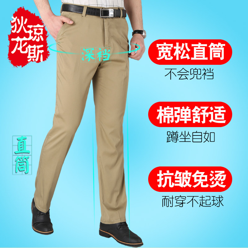 Summer thin stretch ice silk cotton middle-aged men's casual pants Middle-aged and elderly men's pants loose straight dad pants