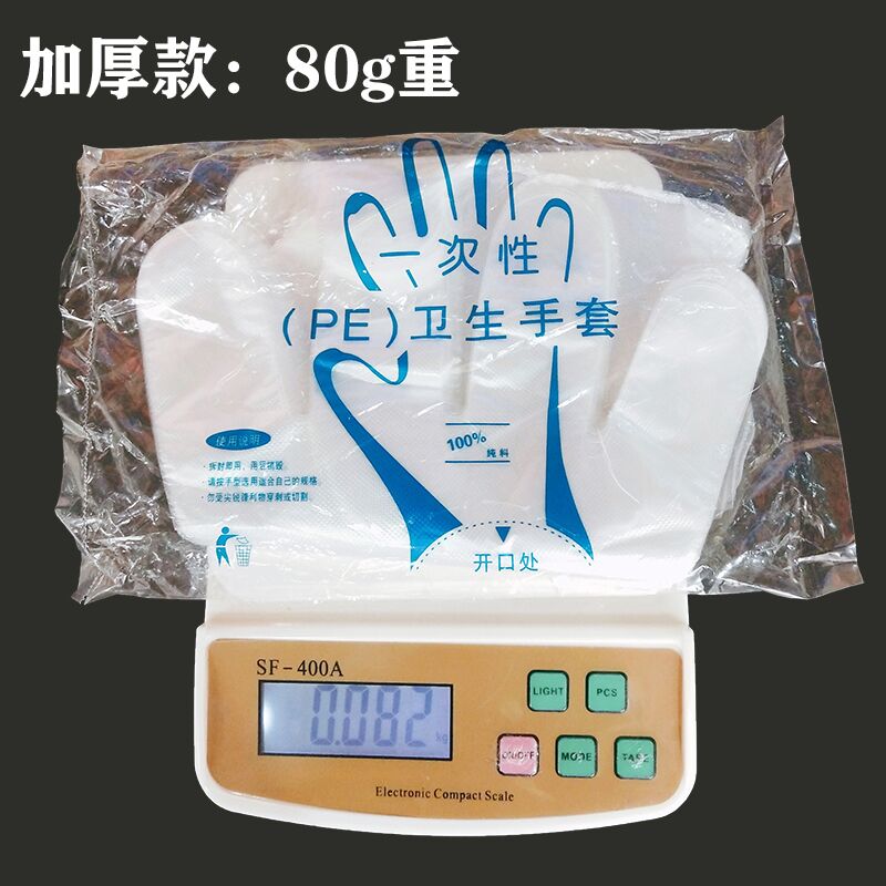 Disposable PE gloves catering beauty barbecue thickened PE transparent plastic film gloves 0 8g 100 bags