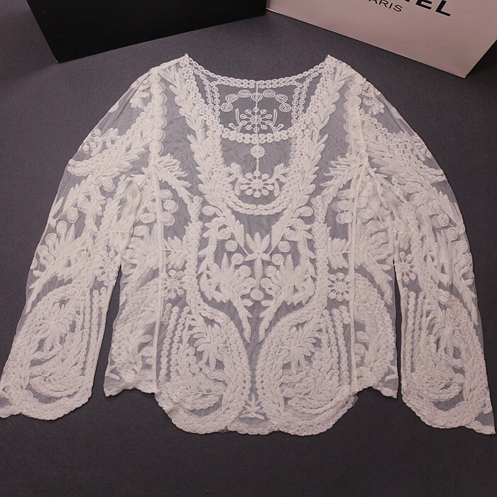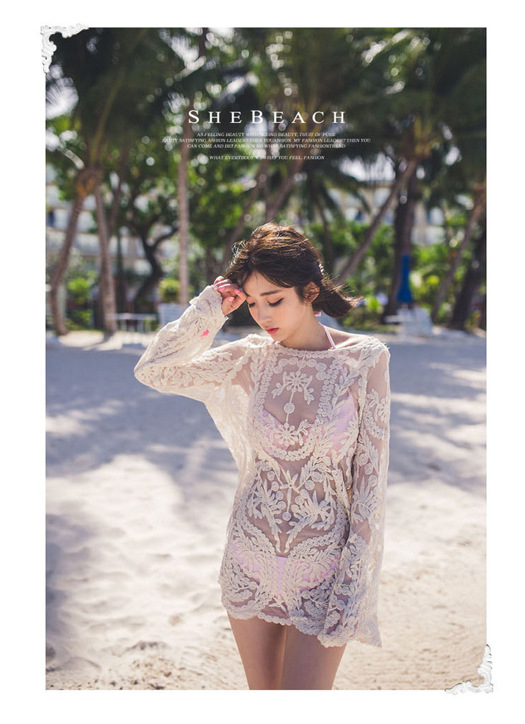 Summer romance-Lace openwork crochet long sleeve blouse Bikini swimsuit jacket sunscreen beach clothes for women