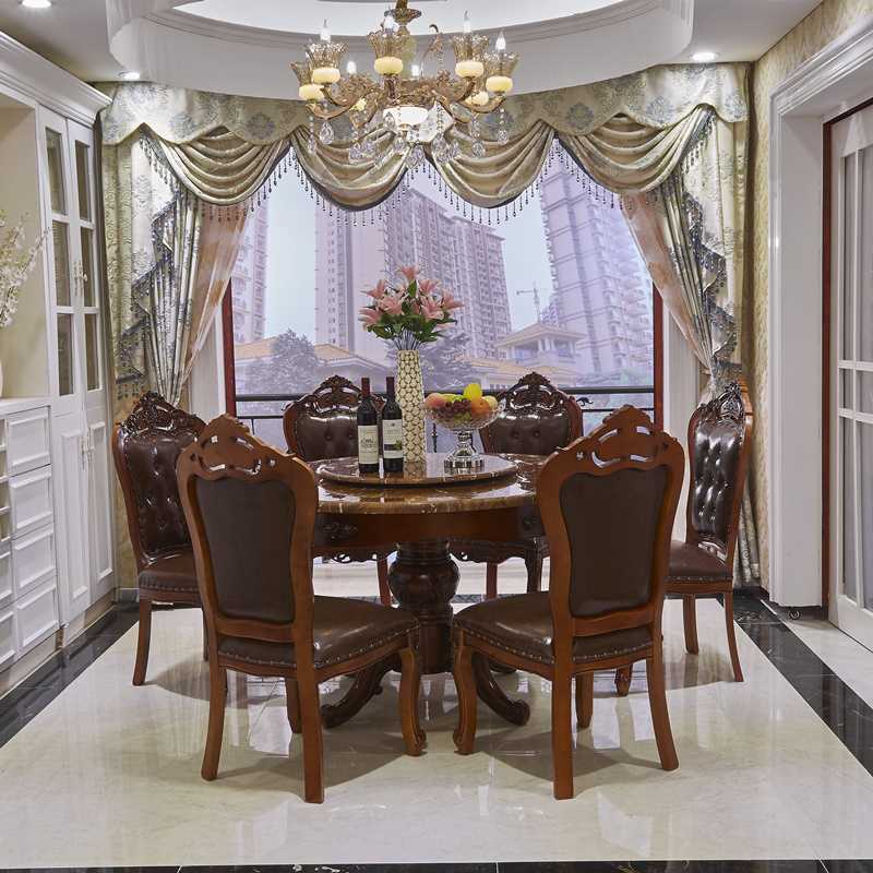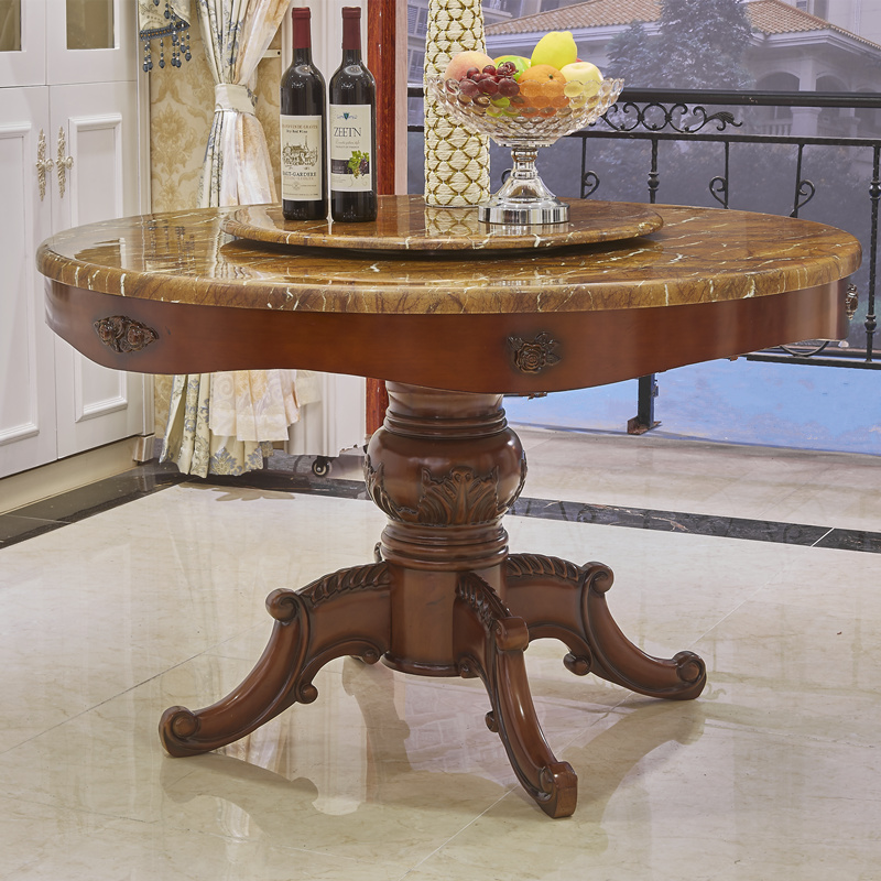 European marble dining table solid wood dining table solid wood dining table and chair combination turntable round table European dining table and chairs