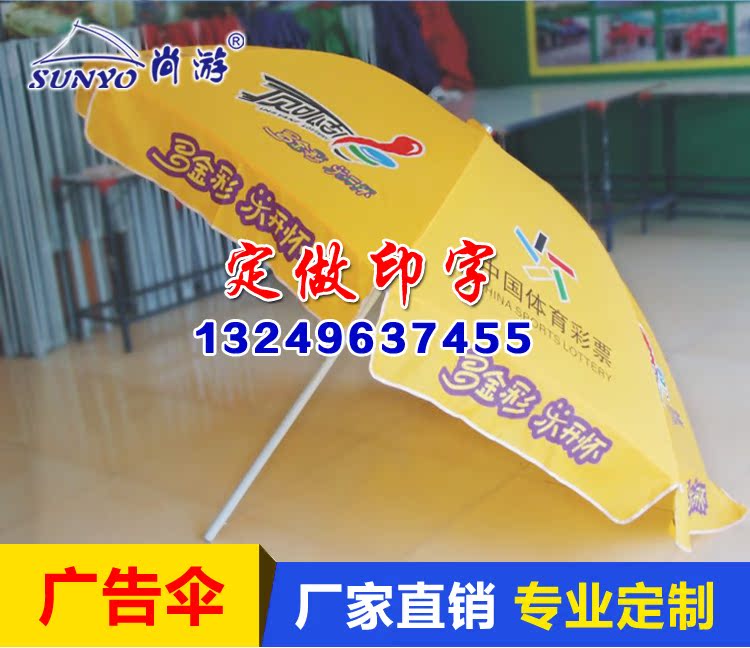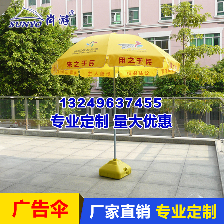 Guangzhou Body Color Advertising Umbrella Outdoor Beach Umbrellas Beach Umbrella Customized Yellow Sports Lottery Advertising Umbrella Pendulum