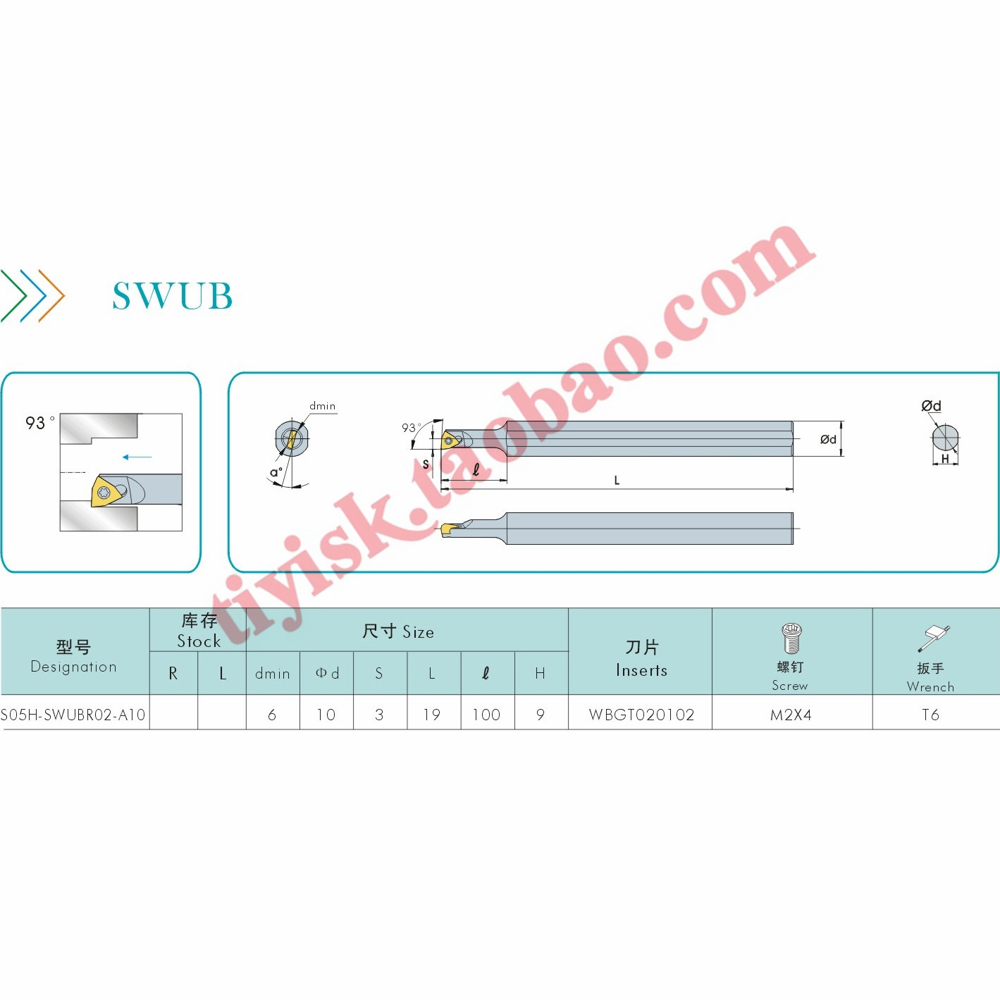 Samhan knife holder S05H 06H-SWUBR02 06-A10 variable diameter inner hole knife 93° large and small head inner hole knife holder