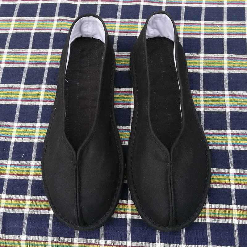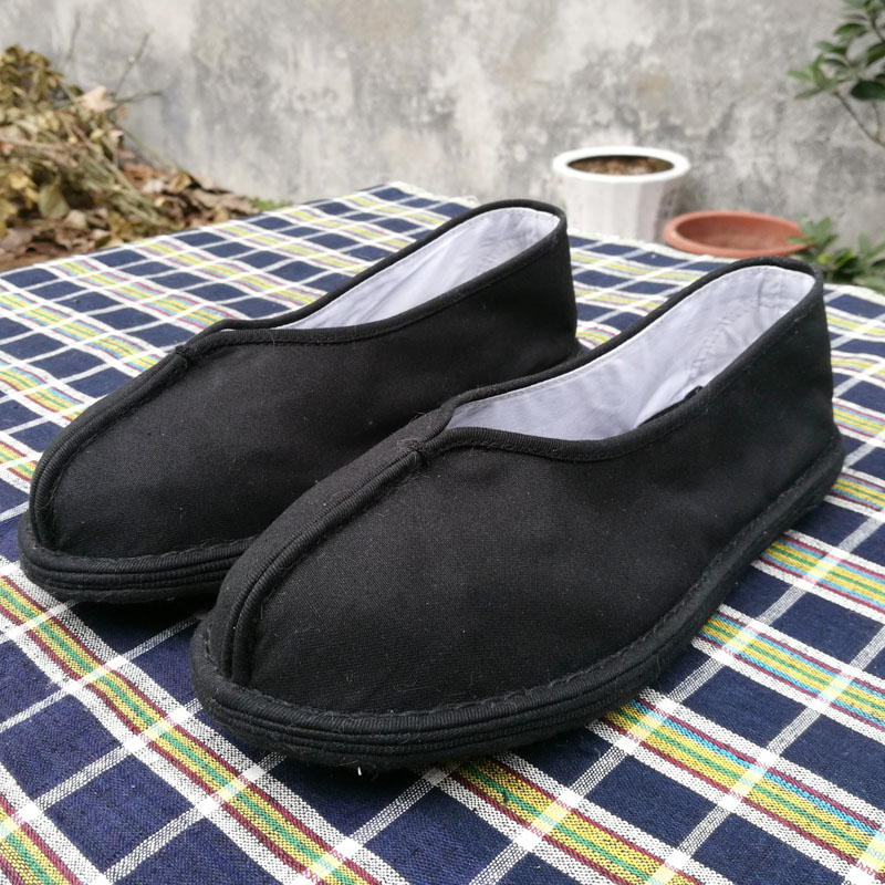 Pure handmade Chianti bottom cloth shoes men and women black flat bottom small round mouth comfortable and breathable breaded traditional old Beijing cloth shoes