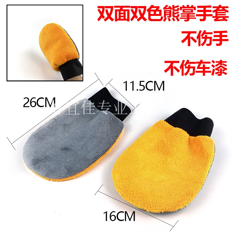 Car wash gloves sheep plush rubbing towels car double face bear palm thickened coral Syneille rags cleaning long floss