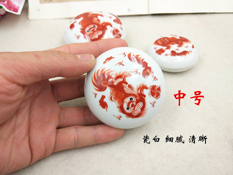 Guangzutang Jingdezhen Ceramic Indash Box High White Porcelain Cylinder Porcelain Box Red Lion Powder Box Indash Cylinder Study Four Treasures
