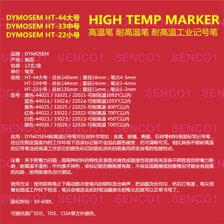 American DYMOSEM glass ceramic metal high temperature resistant marker pen resistant to 1000 degrees high temperature without fading pen