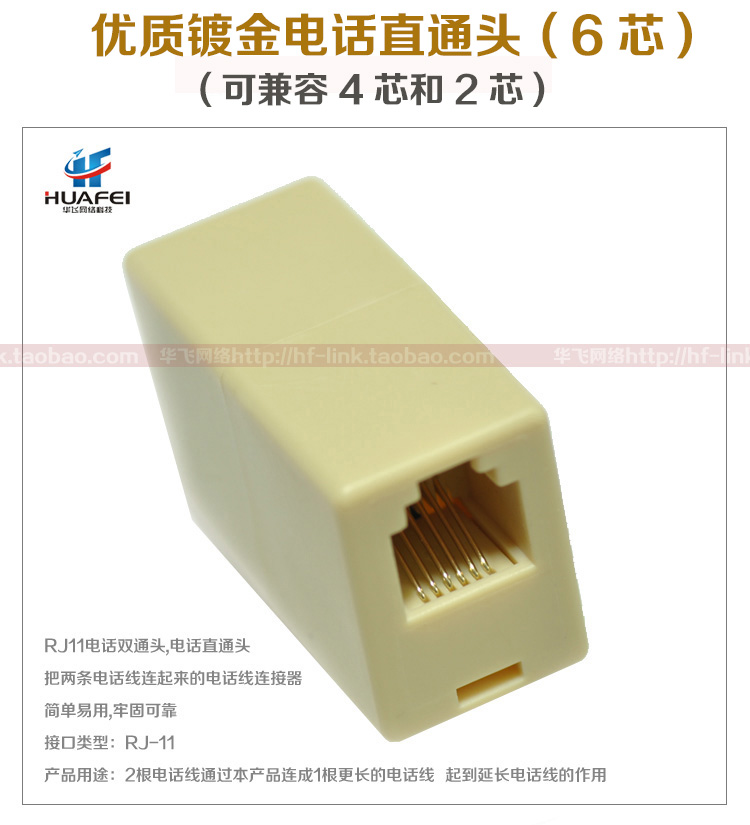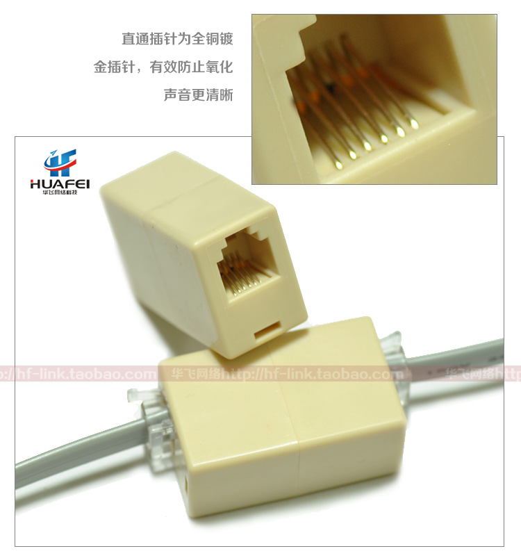 Gold-plated 6-core telephone straight-through head 6P6C telephone line extender junction box RJ12 telephone line connection straight-through head