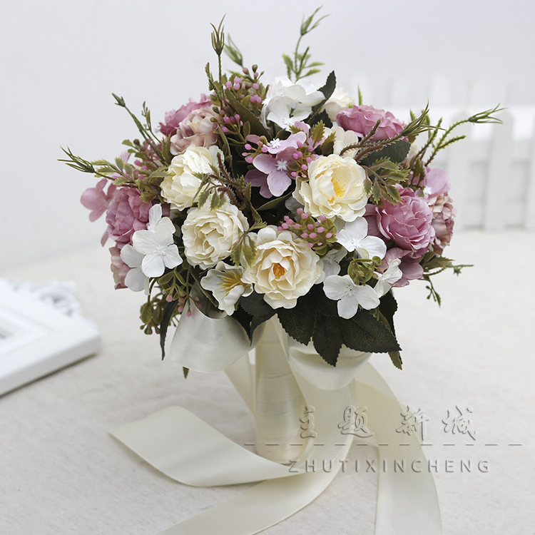 Wedding Photos Photo Gallery Photography Photo Props Bridal Hand Held Flowers Wedding New Powder Red White Emulation Han Style Peony Bouquet