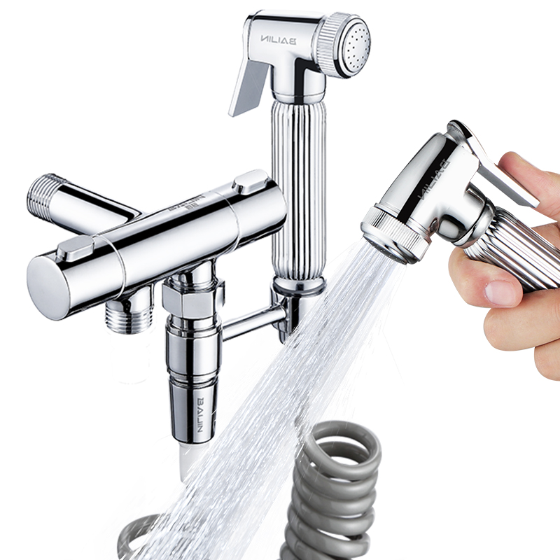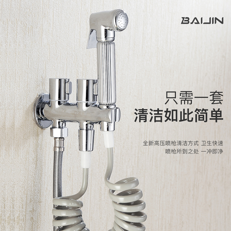 Baijin copper three-way triangular valve toilet spray gun set companion one in two out faucet women wash flusher nozzle