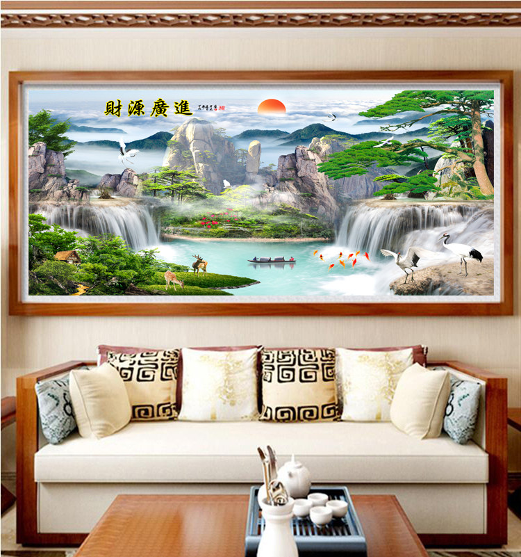5D diamond drawing full diamond diamond source wide welcome pine mask show Nine fish chart landscape drawing room with cross embroidery