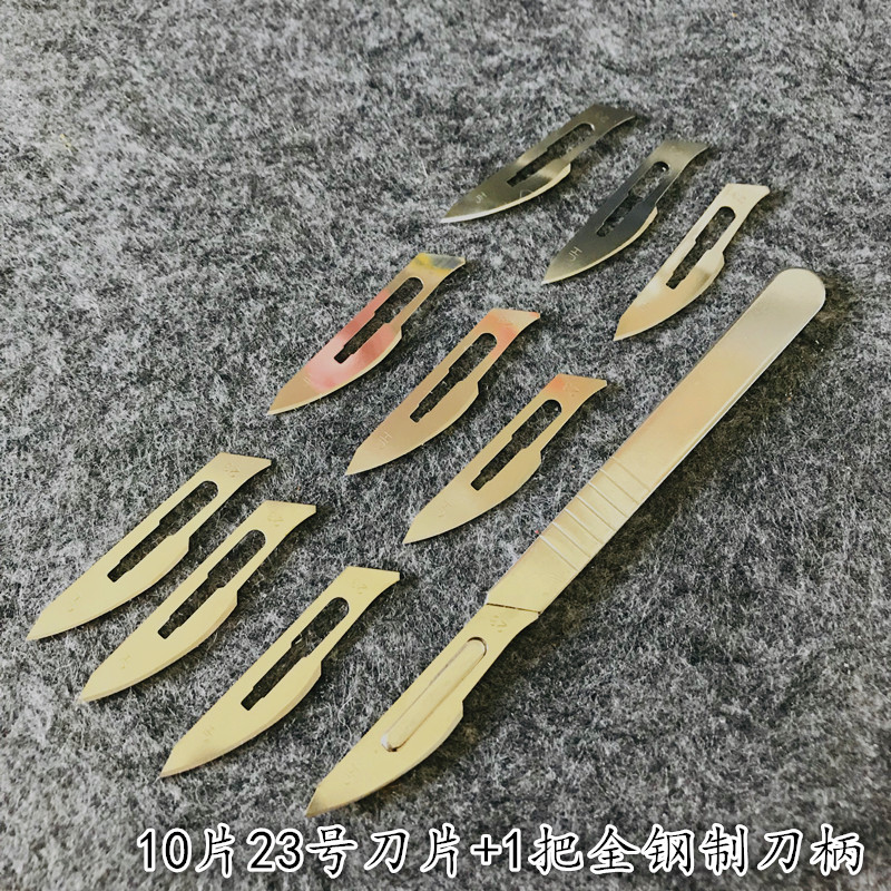 No. 11, No. 12, No. 23 plastic three knives a set of 10 No. 11 blades all steel handle 1 10 No. 23 blades all steel handle 1