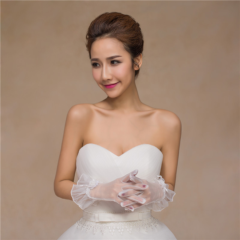 Bride Wedding Lace Five Finger Gloves Short Wedding Dresses Gloves Korean Wedding Wedding Garment Gloves