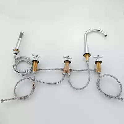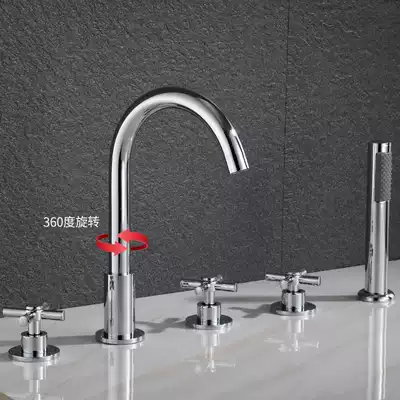 Cross silver bathtub five-hole faucet black Big Bend bathtub five-hole faucet Golden Cross bathtub five-hole faucet chrome-plated waterfall water bath five-hole faucet black gooseneck bathtub five-hole faucet black cross bathtub five-hole