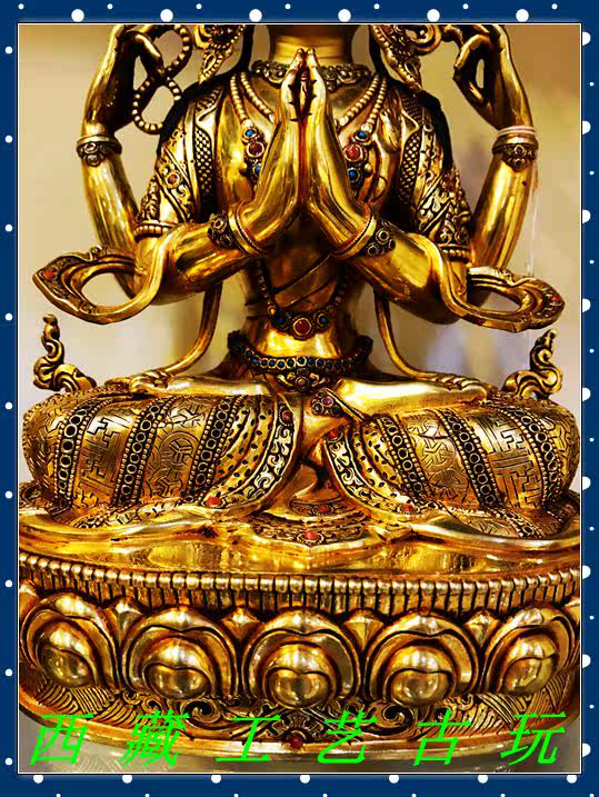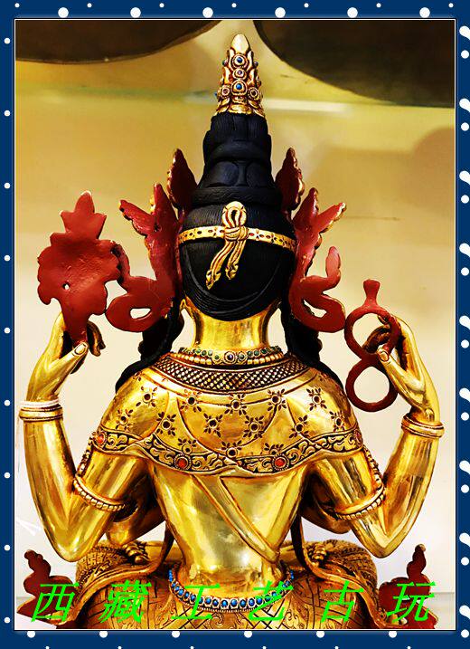 Tibet Nepalese craftsmanship full-olie gold < Four-arm Guanyin > Buddha statue