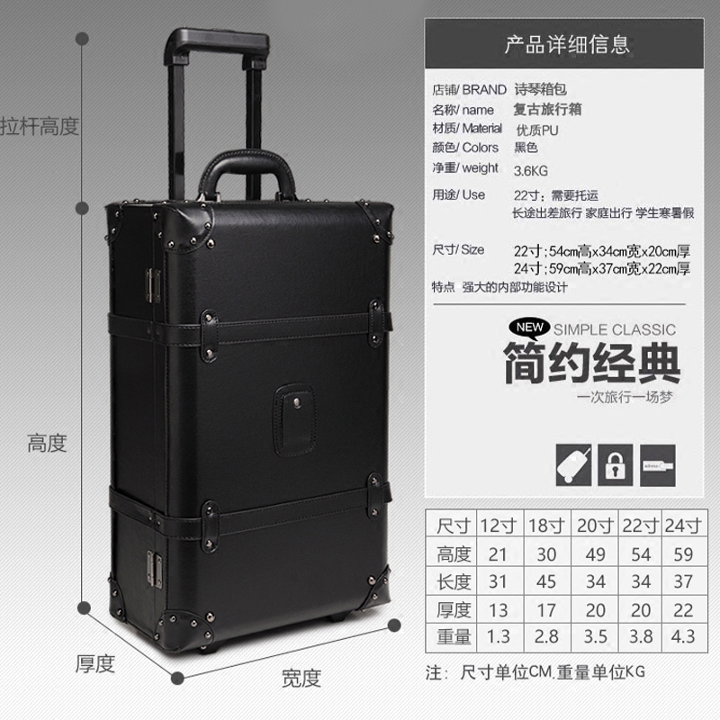 Vintage luggage suitcase suitcase pull box women's right angle suitcase male tide universal wheel lockbox student 20 inches 24 inches