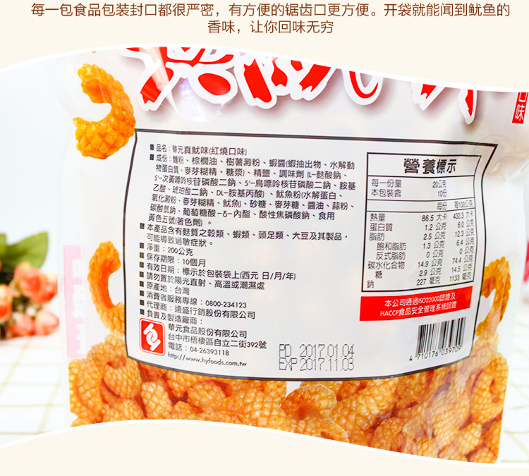 Taiwan Huayuan real squid flavor squid roll Real excellent flavor squid roll puffed snack large package 200g