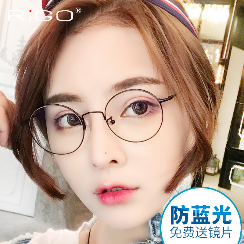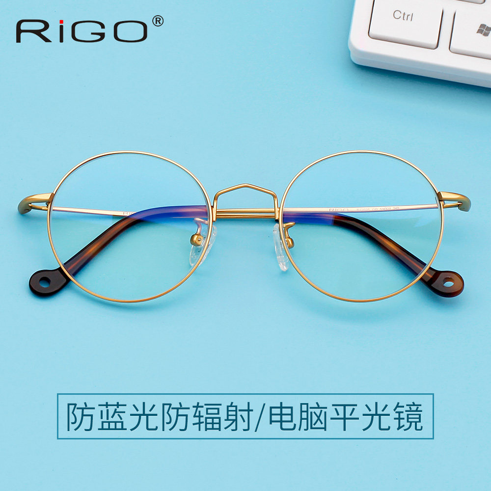 Radiation-resistant glasses Male Blu-ray retro round frame Nearsightedness Mirror Female Art's small frescoed gold silk cell phone Nursing flat light