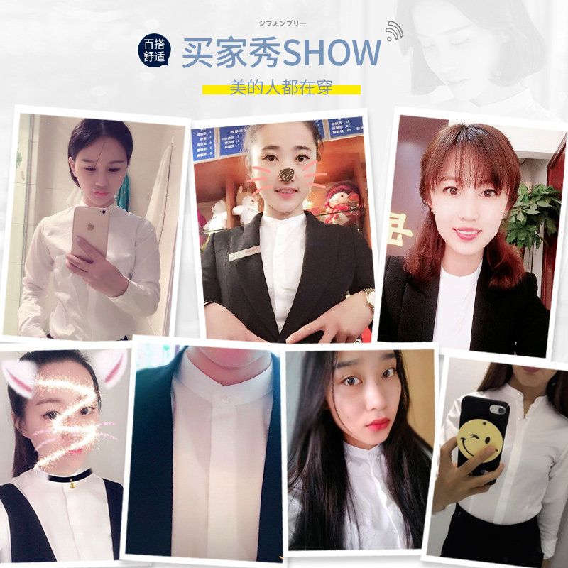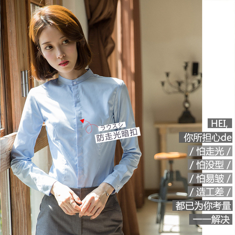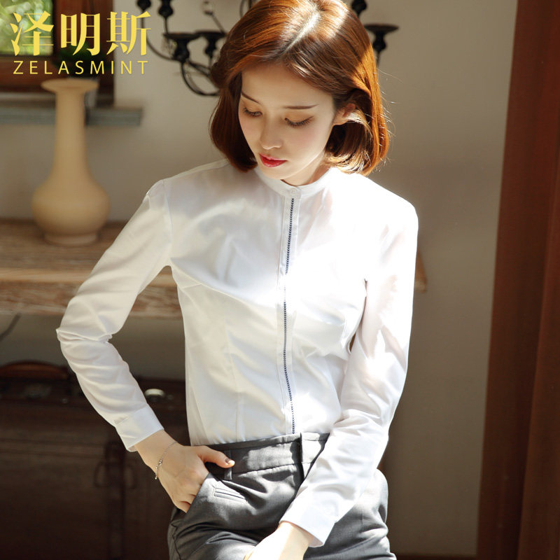 Standing Collar White Shirt Woman Career Long Sleeve Workwear Positive Dress 2023 Autumn Winter Plus Suede Shirt Temperament Design Sensation Blouse-Taobao