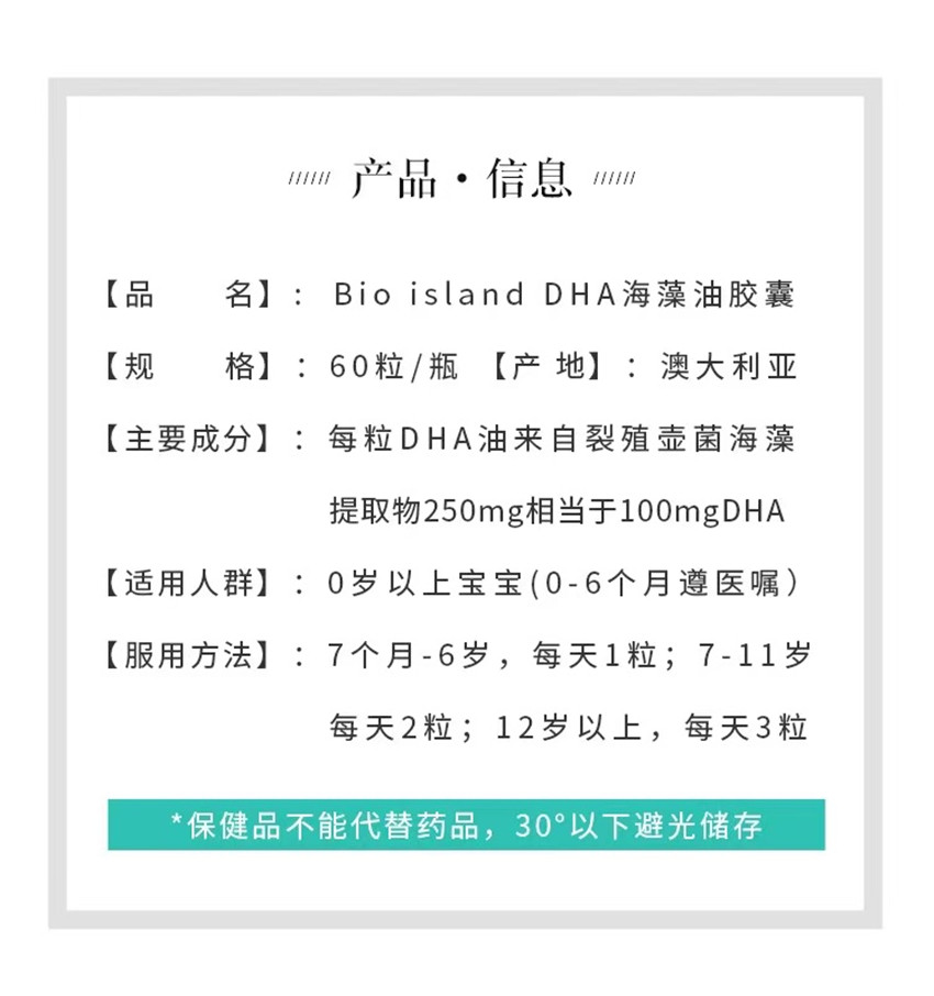 Bio island infant DHA seaweed oil fish oil 60 capsules brain eye care calcium supplement Australia