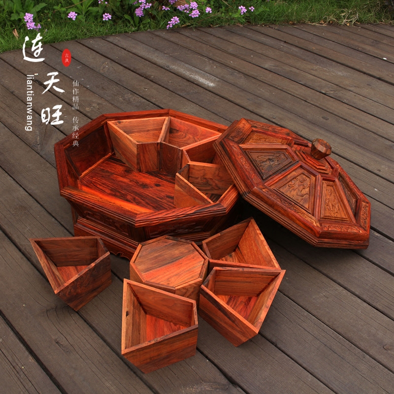 Laos big red rosewood carved fruit plate Cochin Dalbergia activity candy box wooden wedding gift mahogany dried fruit plate
