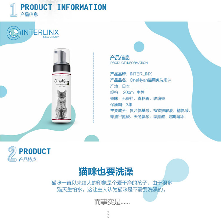 Corruption cat OneNyan pill Yan bathing pets clean and smooth and free of washing foam cat balsamer 200ml