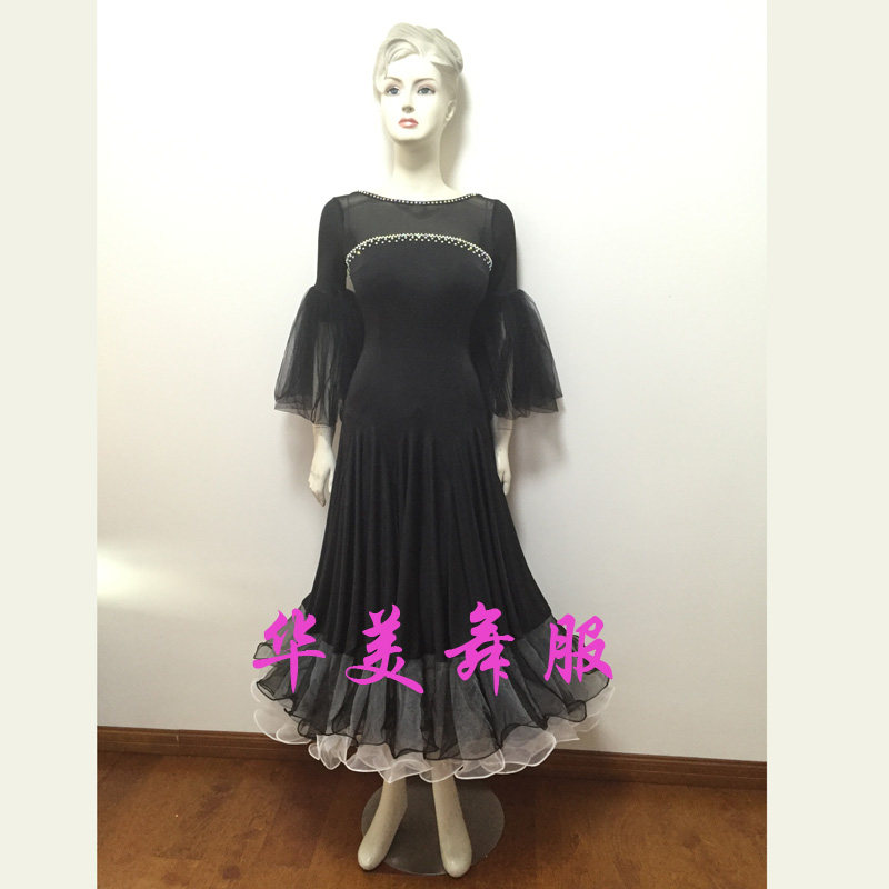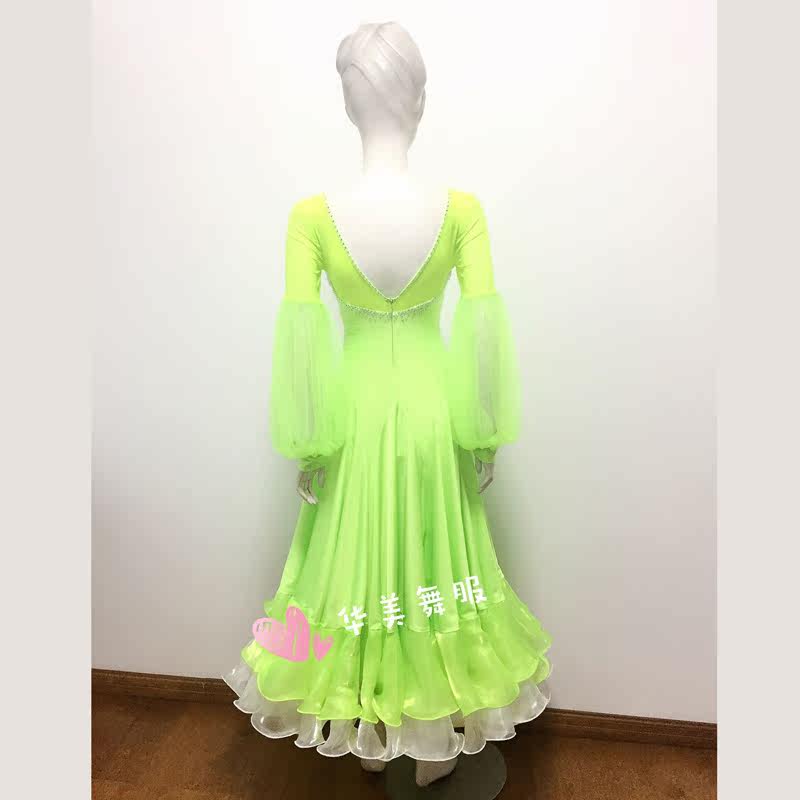 Huamei new modern tango practice skirt lantern sleeve dress national standard social ladies dance clothes custom