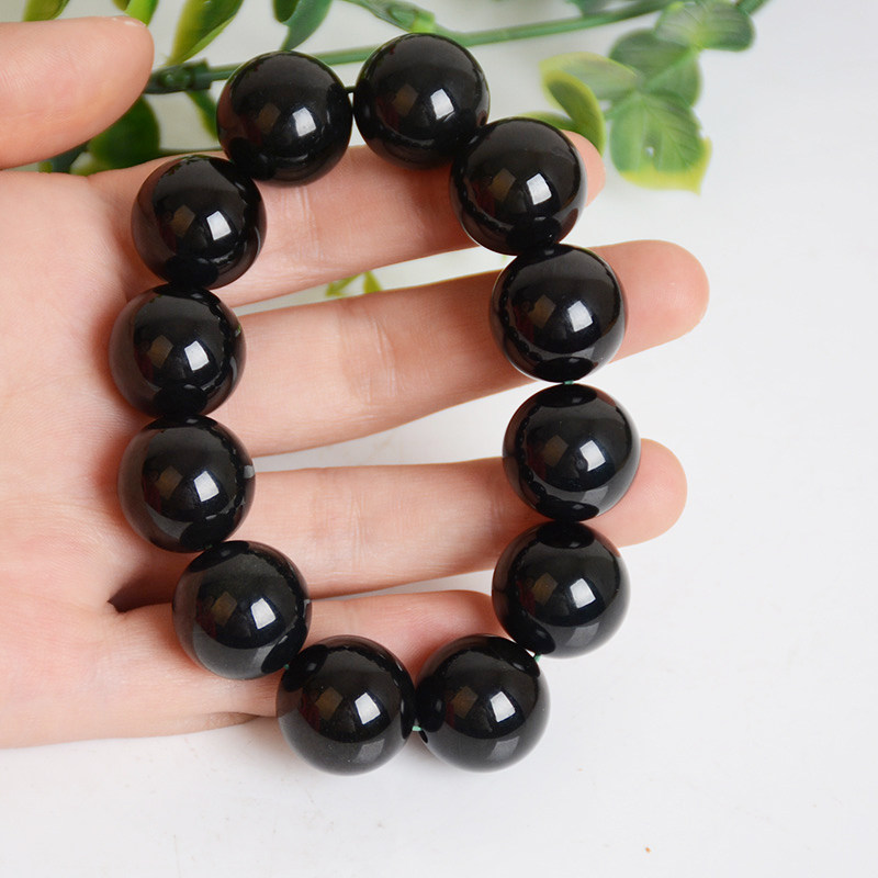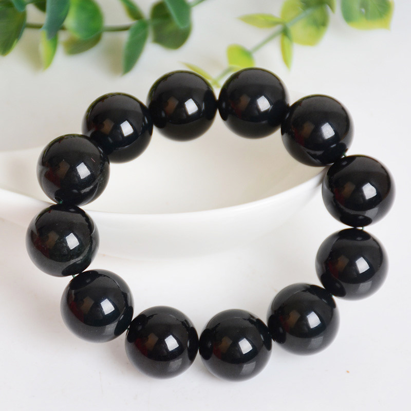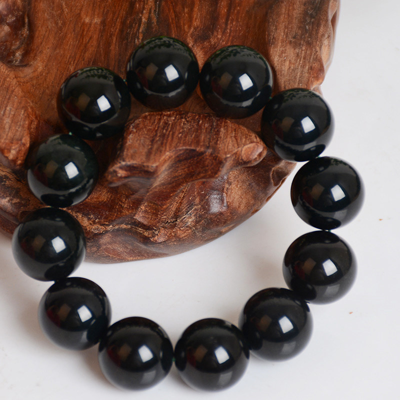 Natural Hetian jade hand string Hetian ink jade ink jade hand chain Single bead diameter 20mm men's and women's Buddha bead Jade hand string