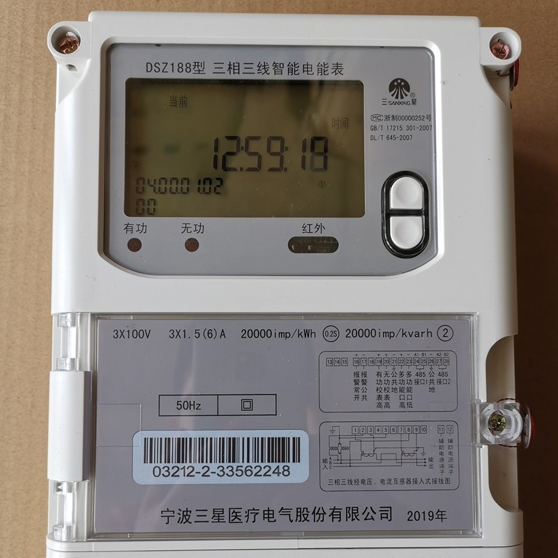 Ningbo Samsung electric meter DSZ188 three-phase three-wire 100V 1 5-6A 0 5s high voltage Fengguoping smart meter