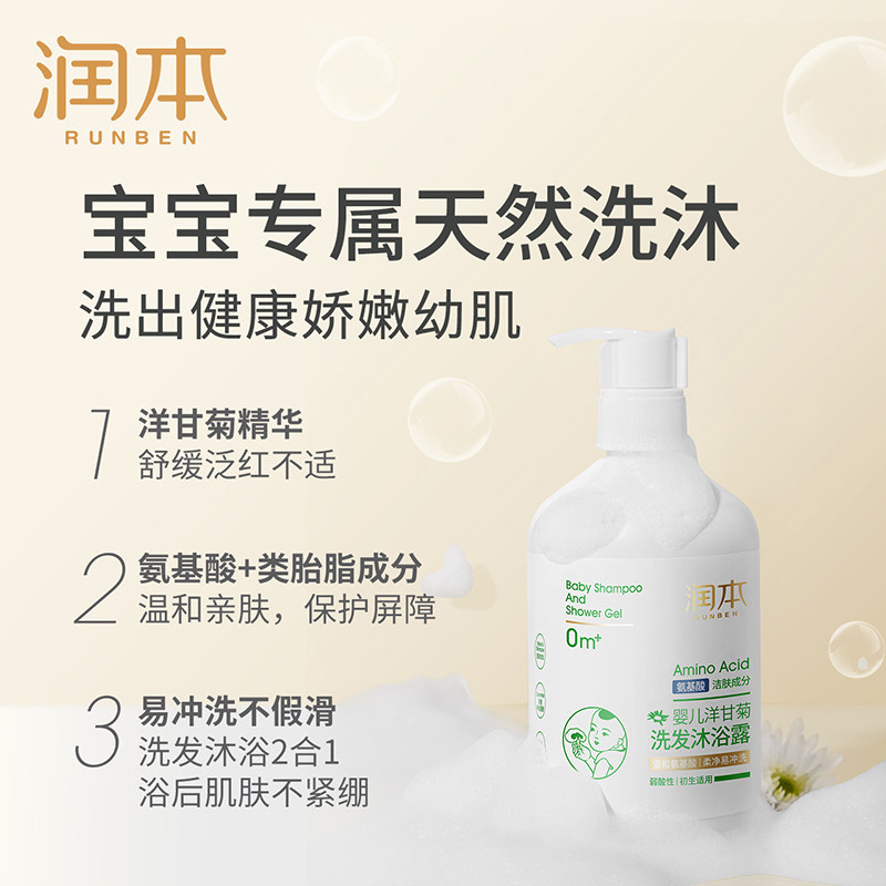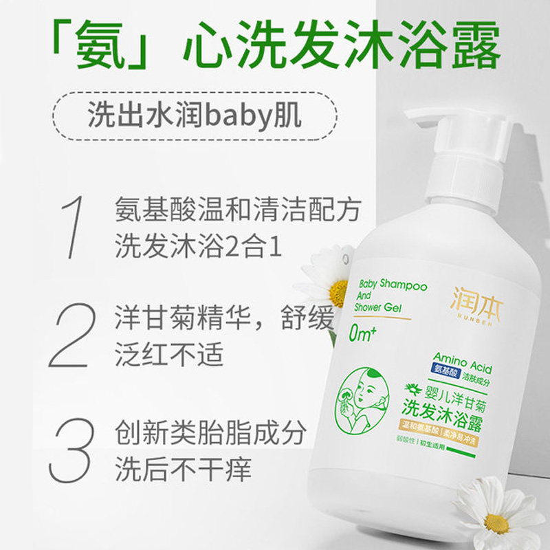 (2 bottles) Rumba baby shampoo bath dew in two in one child baby shampoo chamomile 1000ml