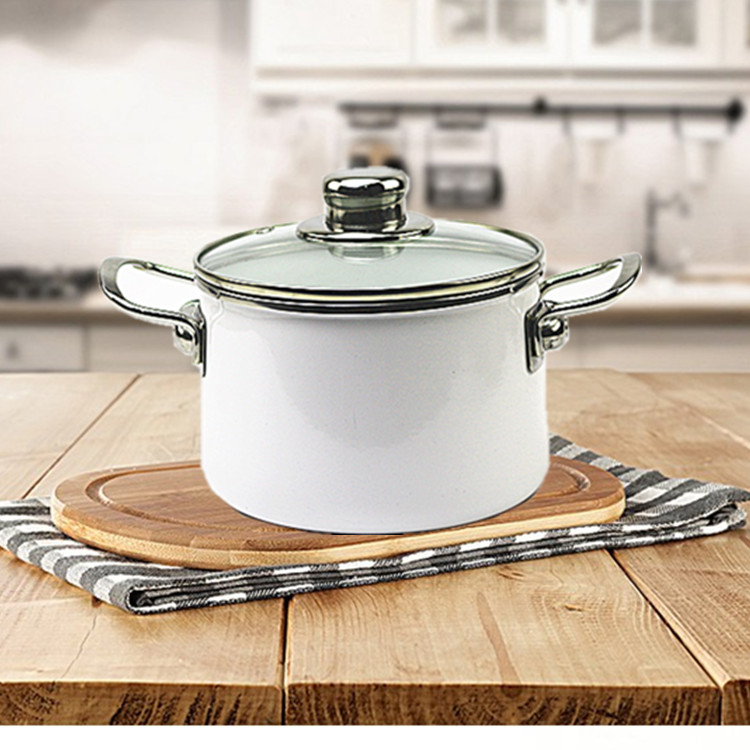Foreign trade 161820cm enamel enamel pan thickened double ear small milk pan below strips of induction cookware cooking stewed broth pan