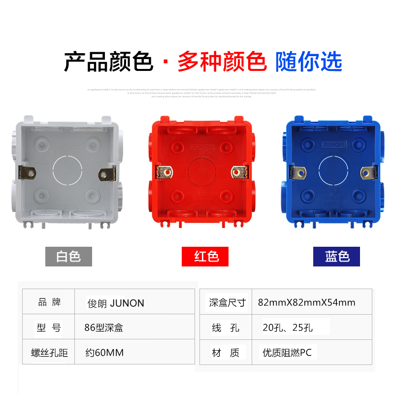 Junzheng deep flame retardant 86 common dark box junction box dark box switch box red white blue deep box