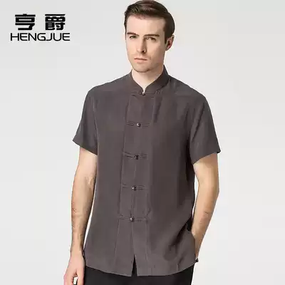 Mulberry silk Tang suit men's short sleeves Chinese style collar buckle Chinese shirt middle-aged men's clothing summer