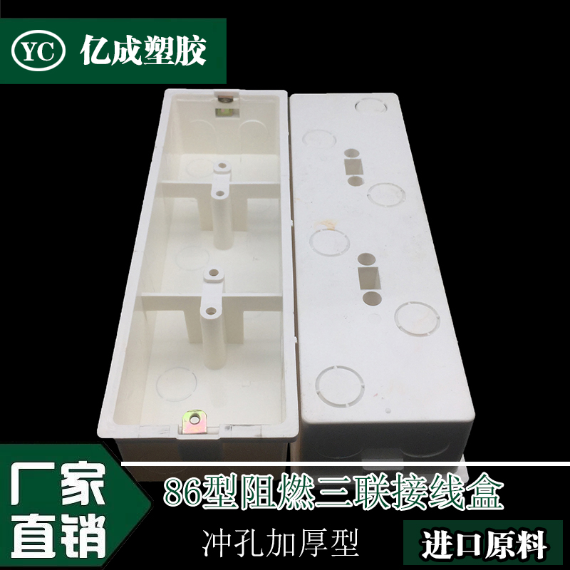 Type 86 concealed flame retardant punching triple junction box Dark case Universal bottom case 86 flush hole thickened triple box