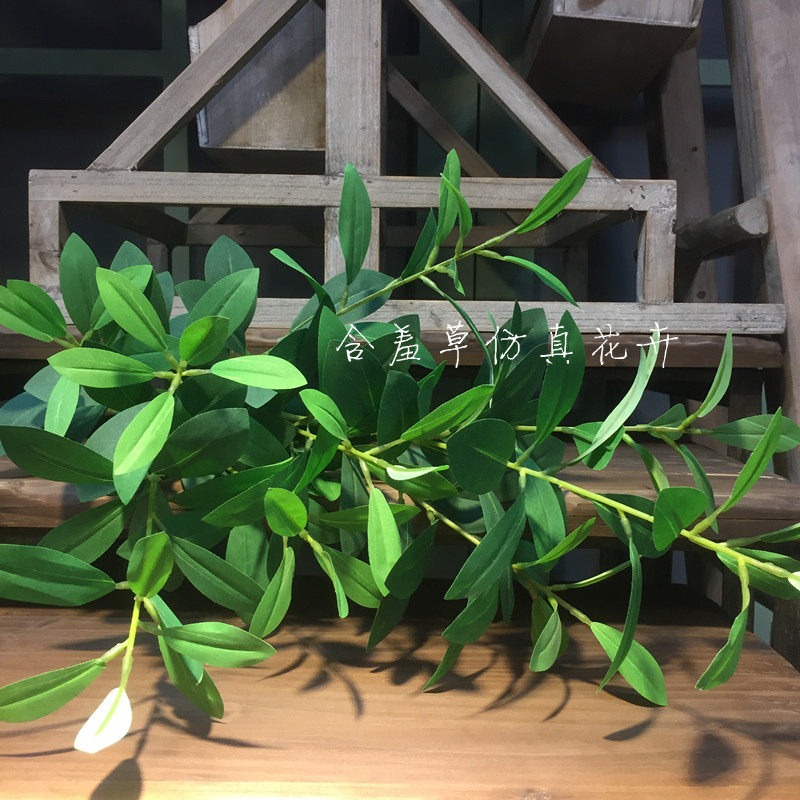 High-end simulation of green plants single olive branches forky cuckoo leaves fresh green leaf branches decorated flower decoration