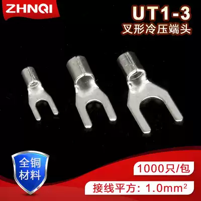 UT1-3 All-copper cold-pressed terminal block Fork type Y-shaped end U-shaped crimping line Bare terminal line nose SNB line ear