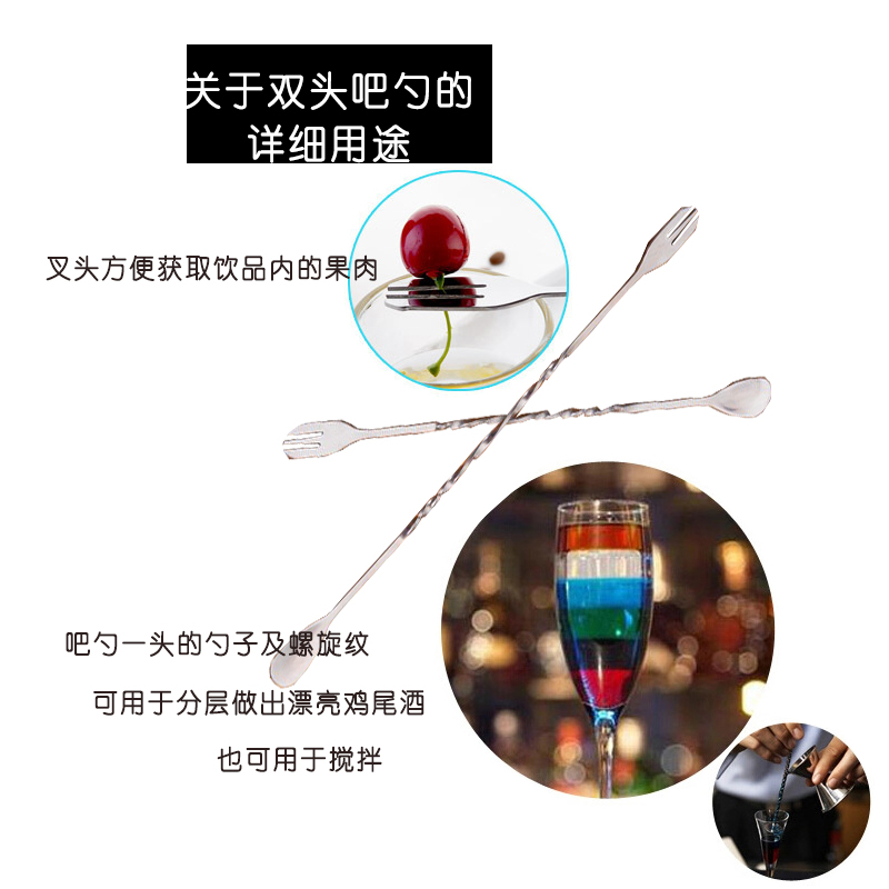 Stainless steel double head bar spoon stir stick long bar, more spoonful cocktail Wine Bar Wine Bar Coffee Milk Tea Shop Supplies