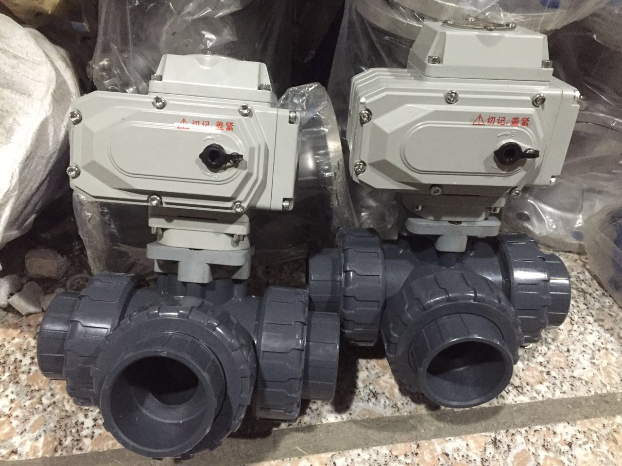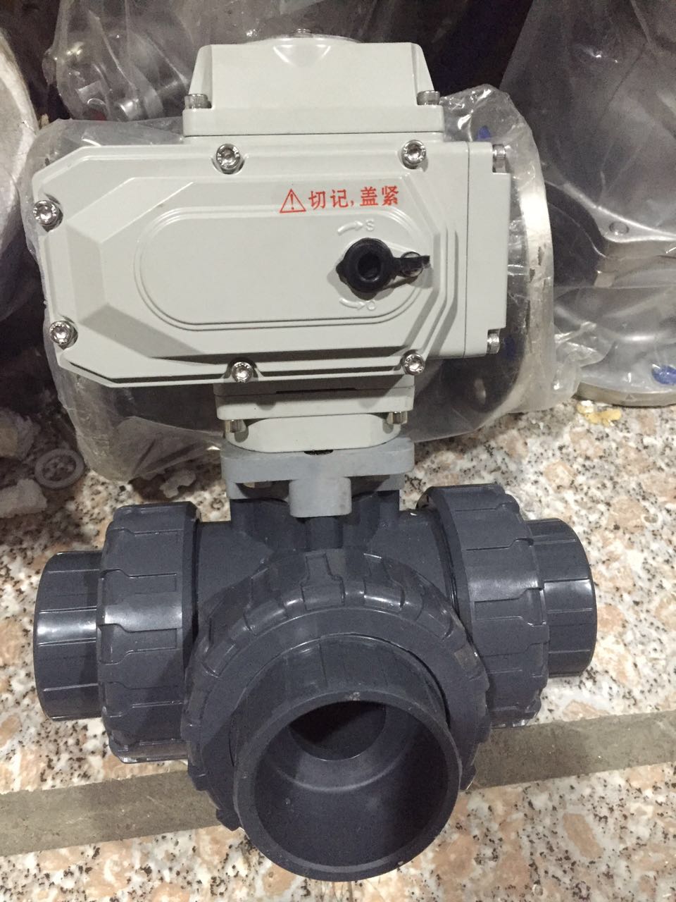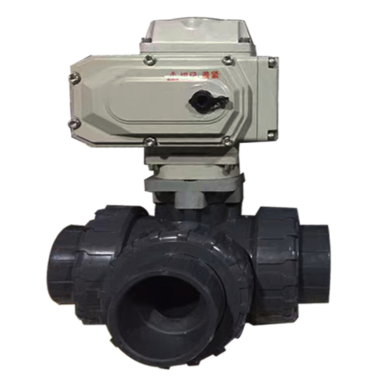 Electric UPVC three-way ball valve UQ914 5F Electric plastic PVC ball valve DN15 20 25 32 40 50