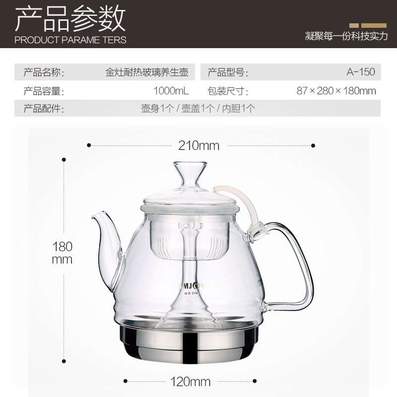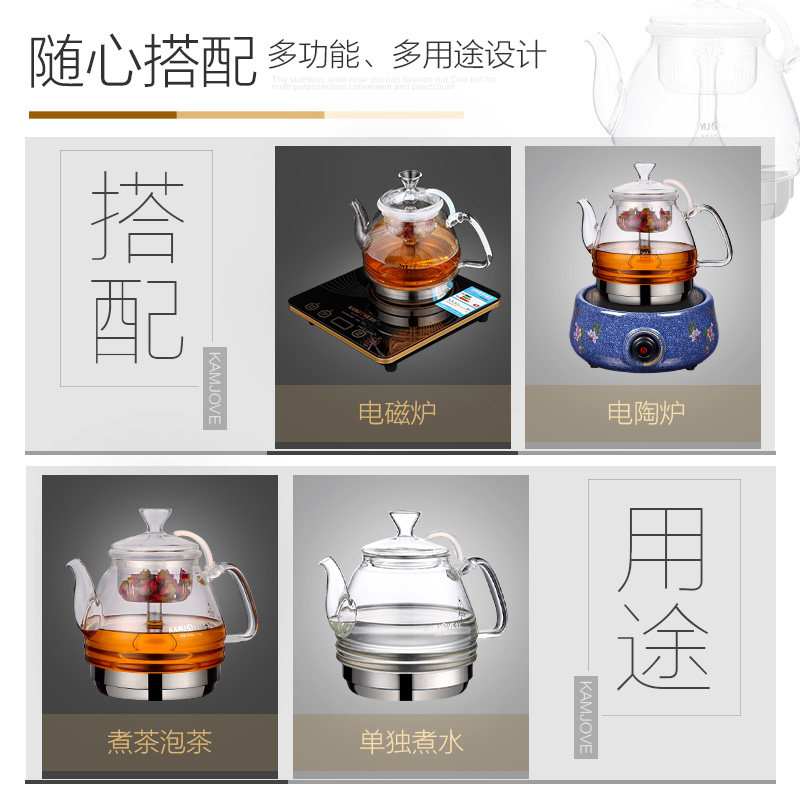 KAMJOVE Gold Foci A-150 Induction Cookers Special Glass Pot Pure Glass Liner Cover Burning Kettle Flowers Teapot