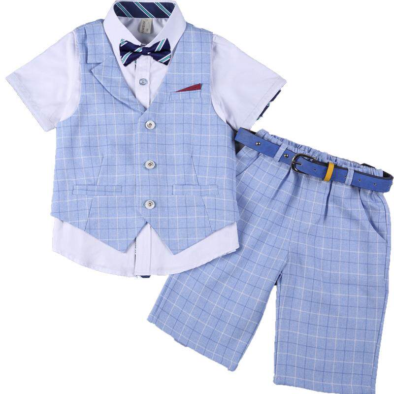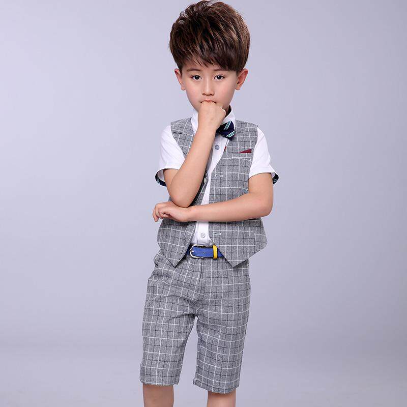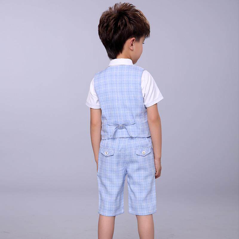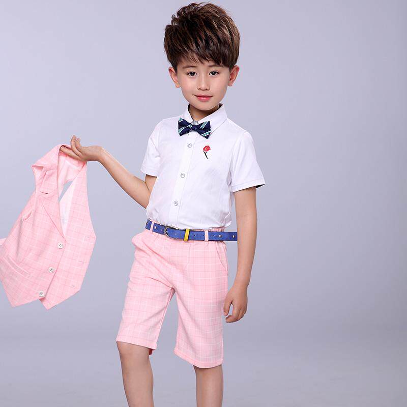 Children's casual suit men's slim vest three-piece flower girl short-sleeved temperament boy dress suit British style summer