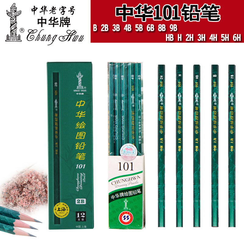 Chinese HB pencil 101 elementary children wooden pencil non-toxic HB 2H 2B 4B students write 2 than pencil drawing hexagon pencil in exam writing
