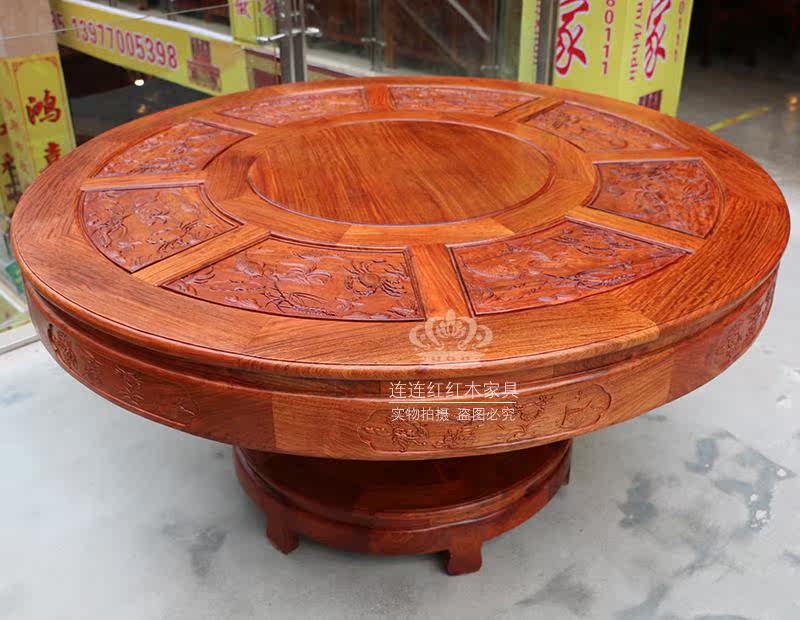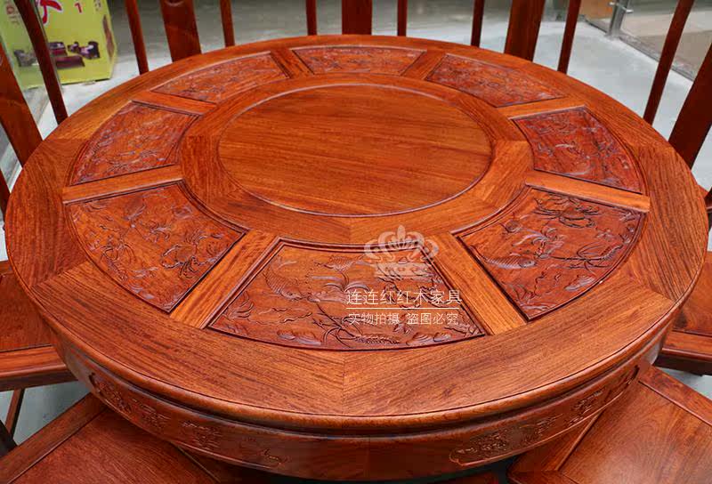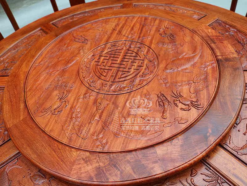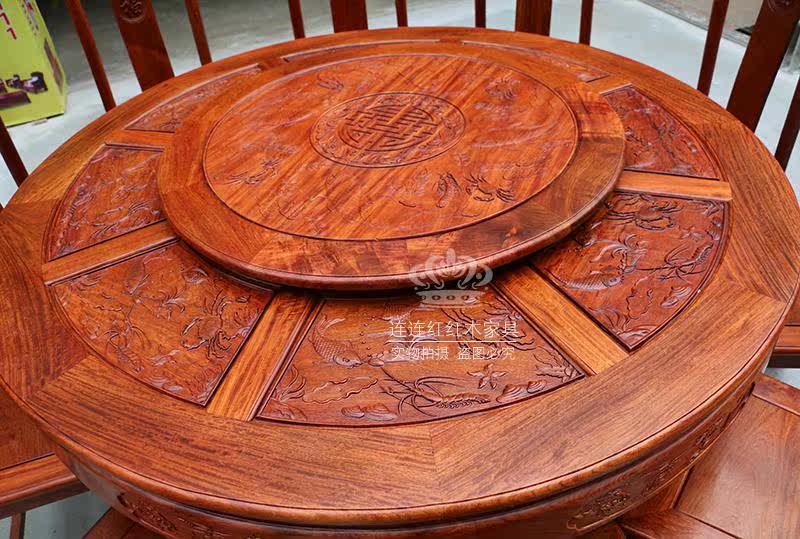 Red wood furniture table Myanmar flower pears wood round table table Chinese solid wood dining table and chairs combined seafood Ming and Qing Classic