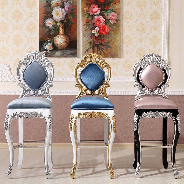 Huatianxia Neoclassical Bar Chair European Bar Chair KTV Bar Chair High Chair Bar Chair Solid Wood Furniture