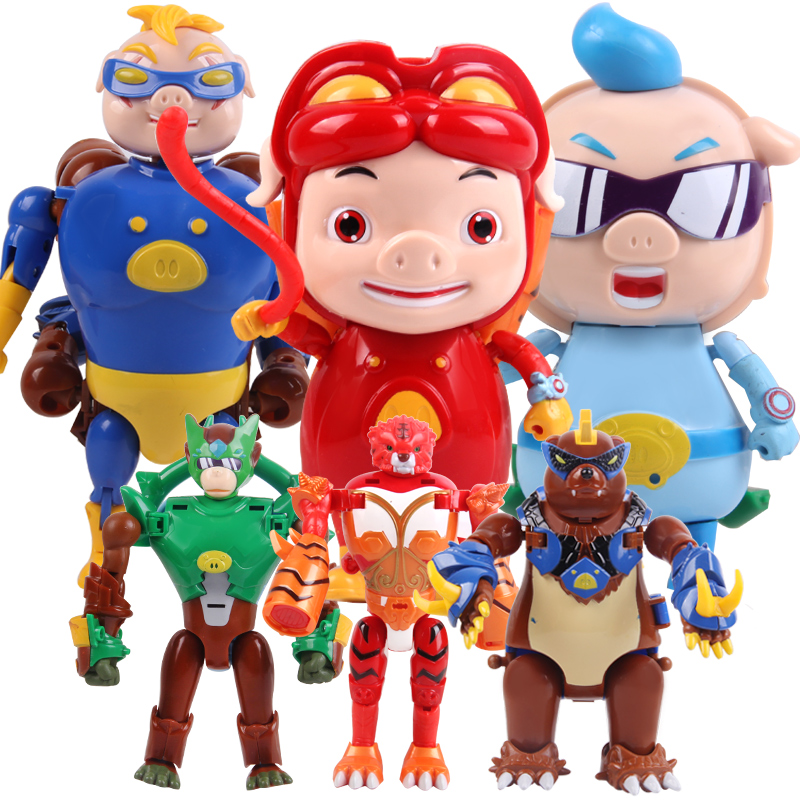 Genuine Pig Pig-Man Changed Body Warriors iron fist tiger god Wooden Ape Stone Beetle 5 Spirit Guardians Deformed Robot Toy