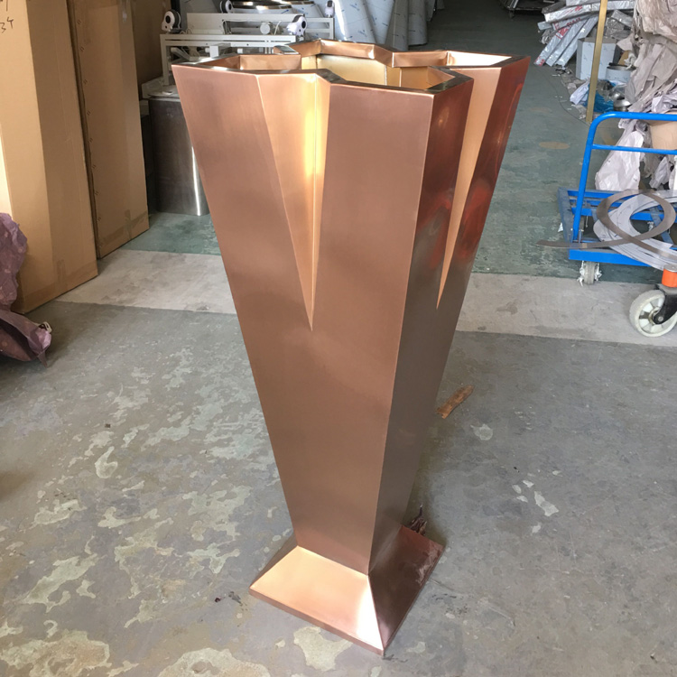 Stainless steel flower pot outdoor metal flower bowl water view 304 florin landscape ground floor large vase wire drawing ancient copper