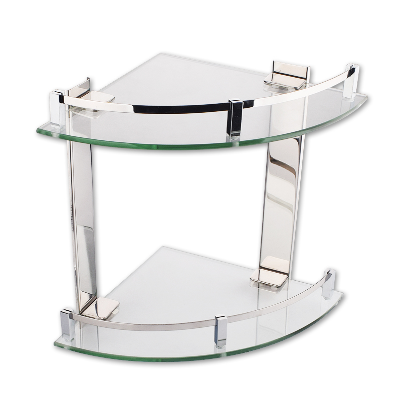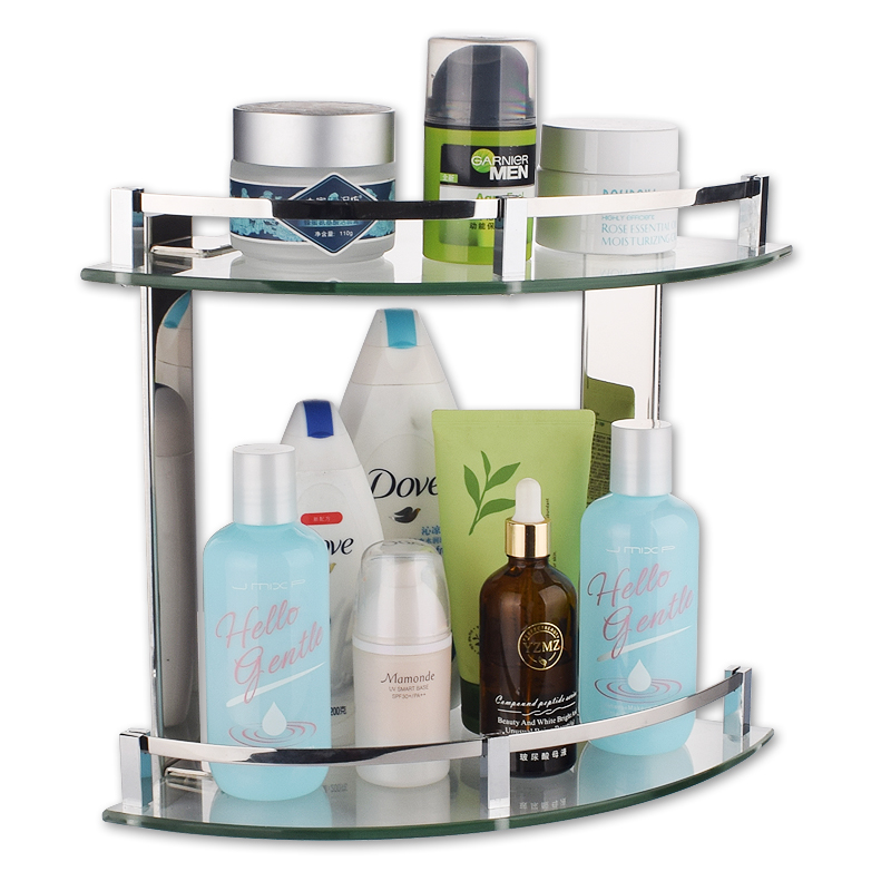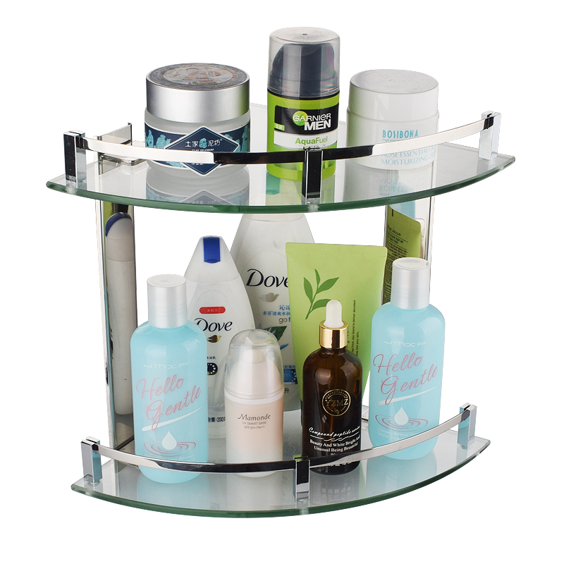 Double-layer tripod Stainless steel thickened glass bathroom storage corner shelf Powder room wall storage corner rack