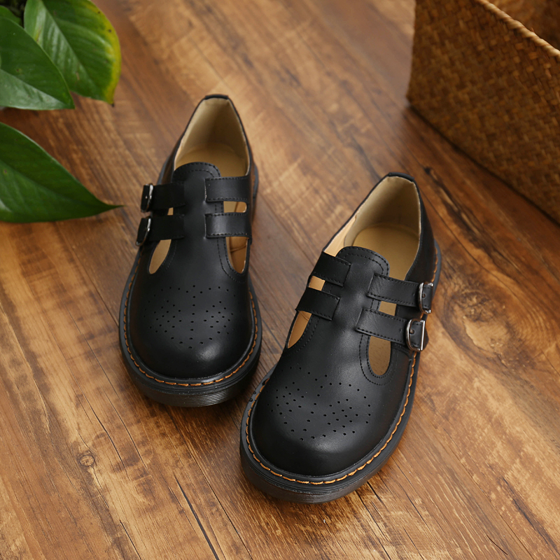 Reminiscing about the old college style Japanese retro Mary Jane shoes small leather shoes flat bottom student literature and art shallow mouth women's single shoes round toe