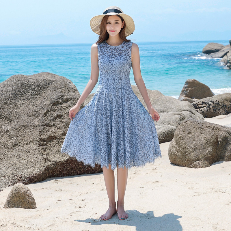 Seaside holiday beach skirt women's summer 2020 new Korean version of the ladies temperament thin travel lace dress