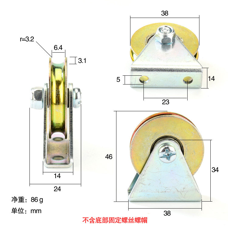 U-groove steel wire rope wire wheel wheel wire hoist accessories 626ZZZ bearing pulley metal pulley 6 4*38*8mm