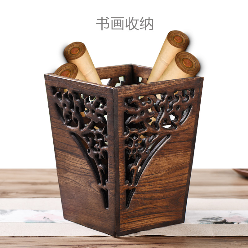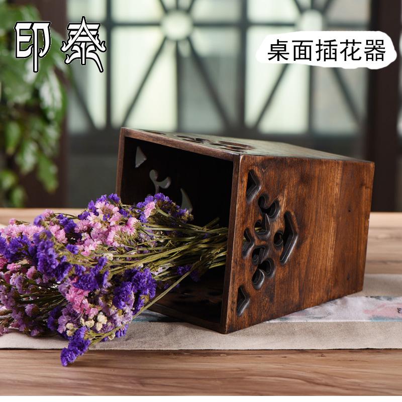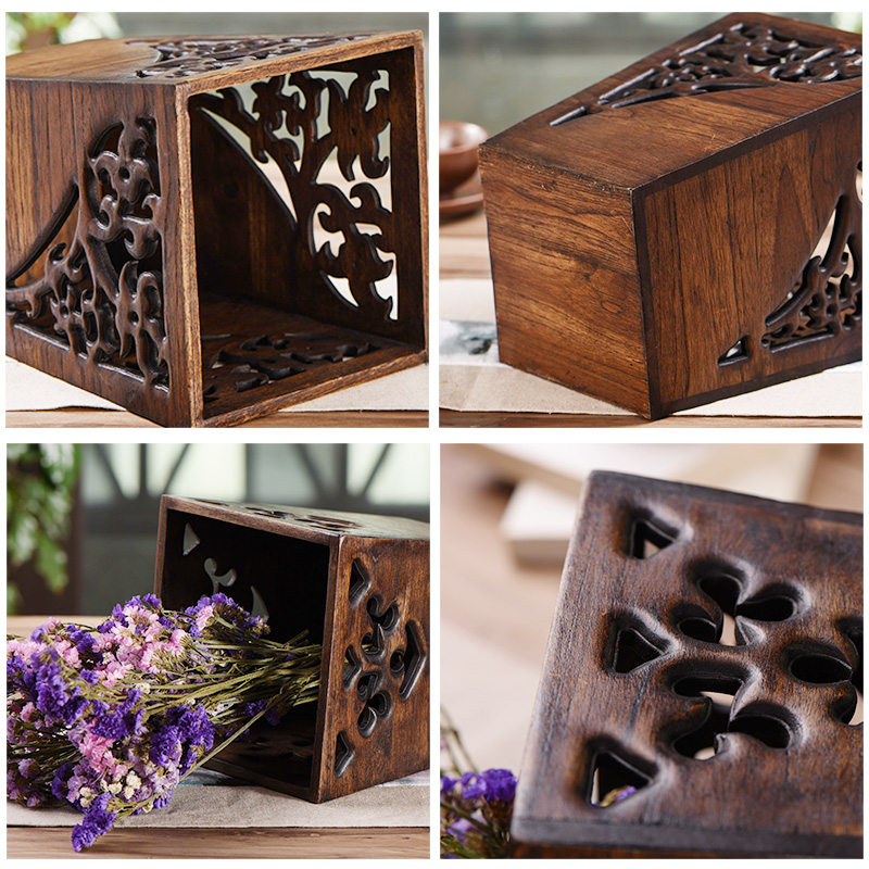 Thailand imported retro solid wood trash can creative living room trash can wooden bedroom square paper basket storage bucket without cover