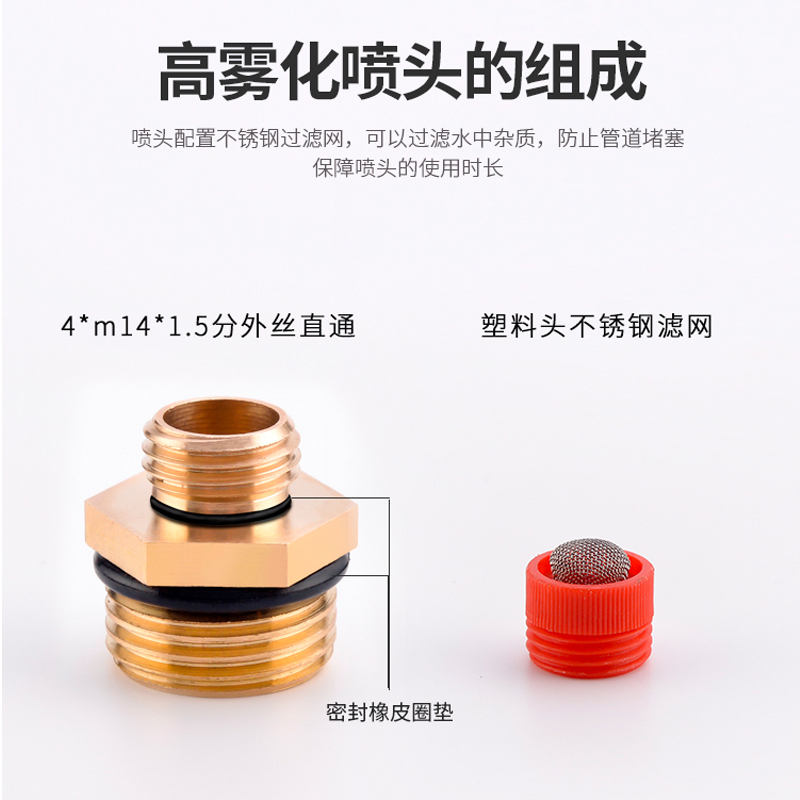 Atomization nozzle Site fence spray nozzle Dust removal dustproof fine mist spray head Irrigation cooling copper nozzle